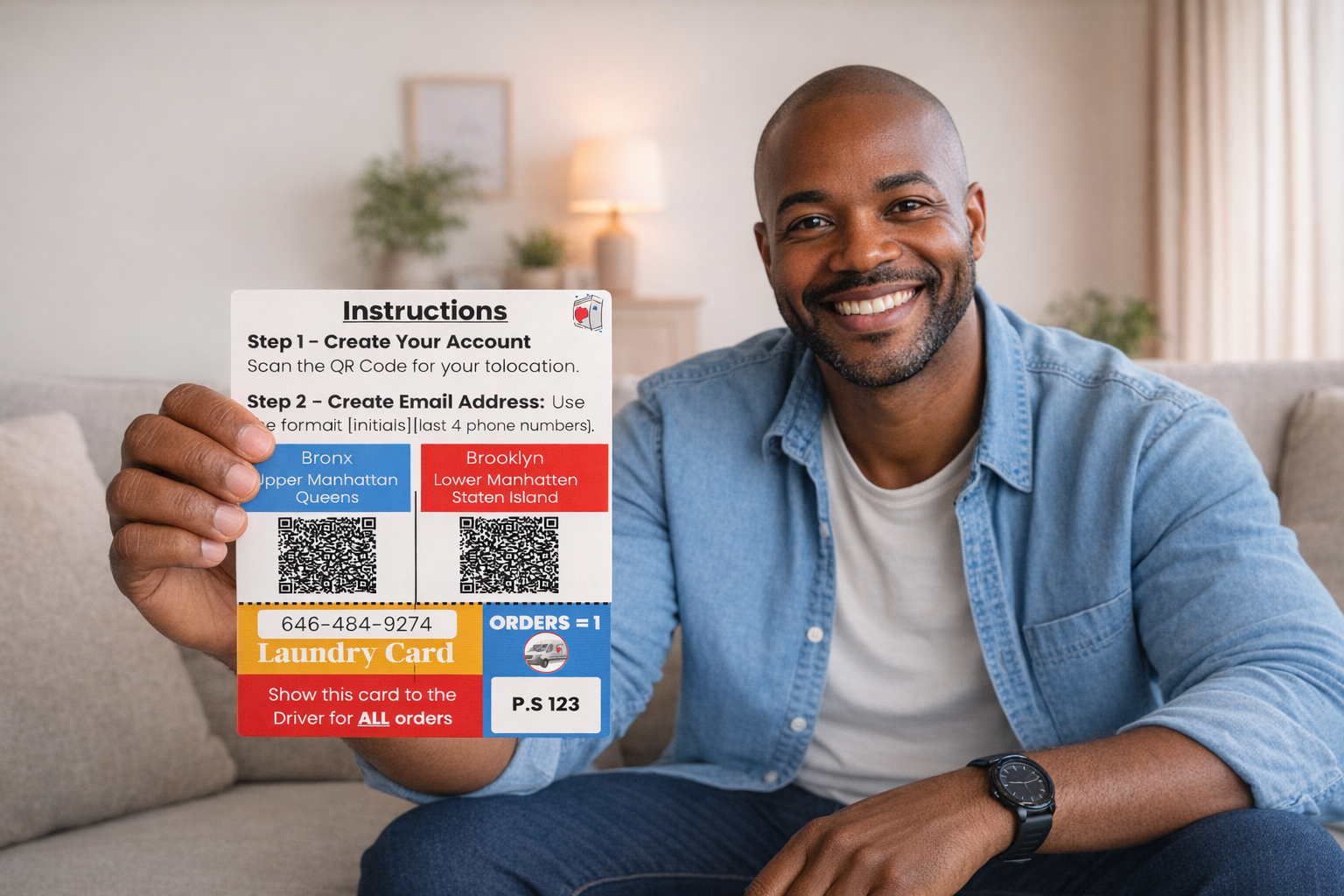 Each PUD Card gives families access to schedule their own pickup and delivery within minutes. Imagine fresh clothes, at your door, with the ease of a card.